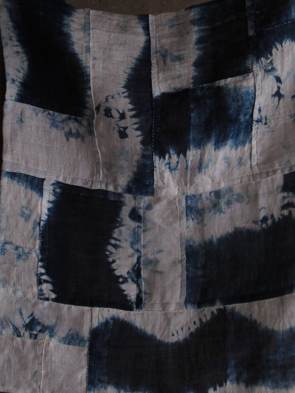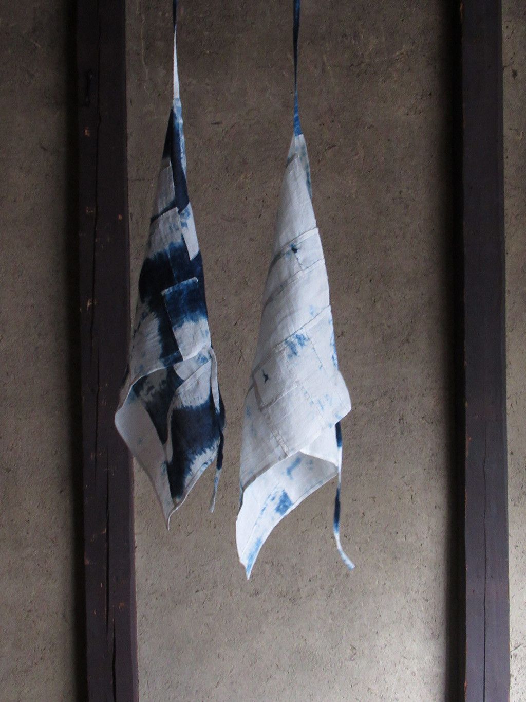 近年來的作品皆以舊布料重新染製,賦予其新的生命與呼吸。