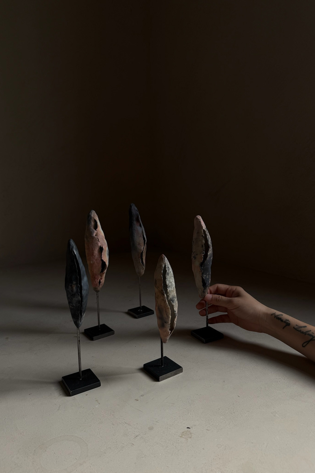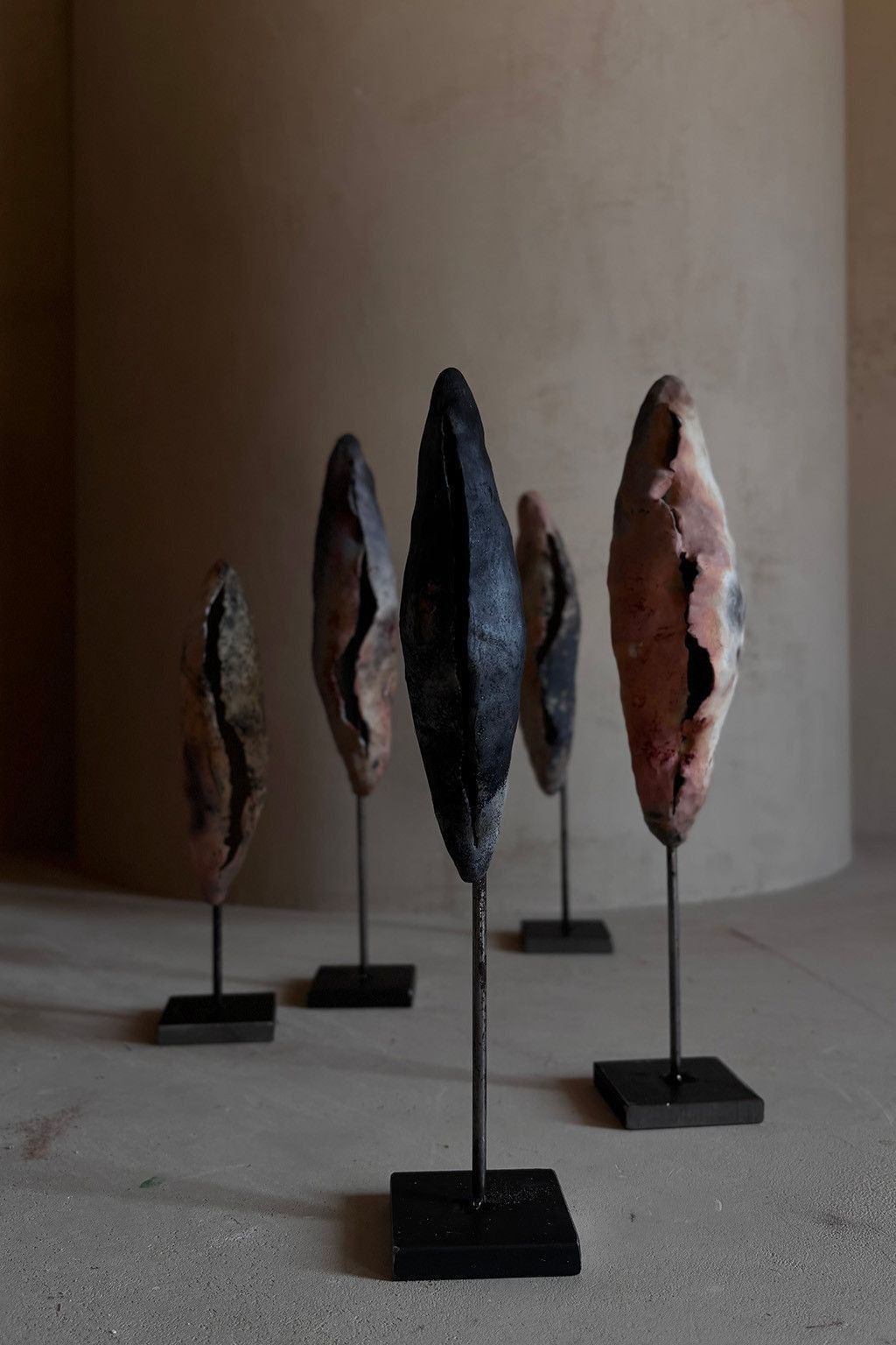 創作初期,形體多貼近身體比例,作為冥想時的錨定物,承載著「由內而外」的能量感。