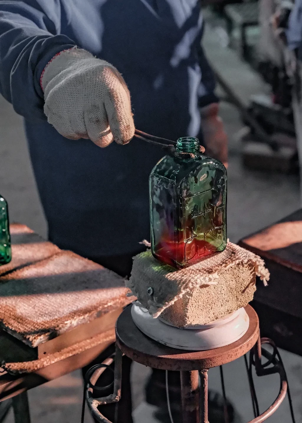 選用玻璃為包裝材質,委託春池玻璃以半手工吹製製作,瓶身上的氣泡、玻璃的流動、字體的漸強漸弱,那些別人眼中的瑕疵,詮釋了我們對生活的想像,