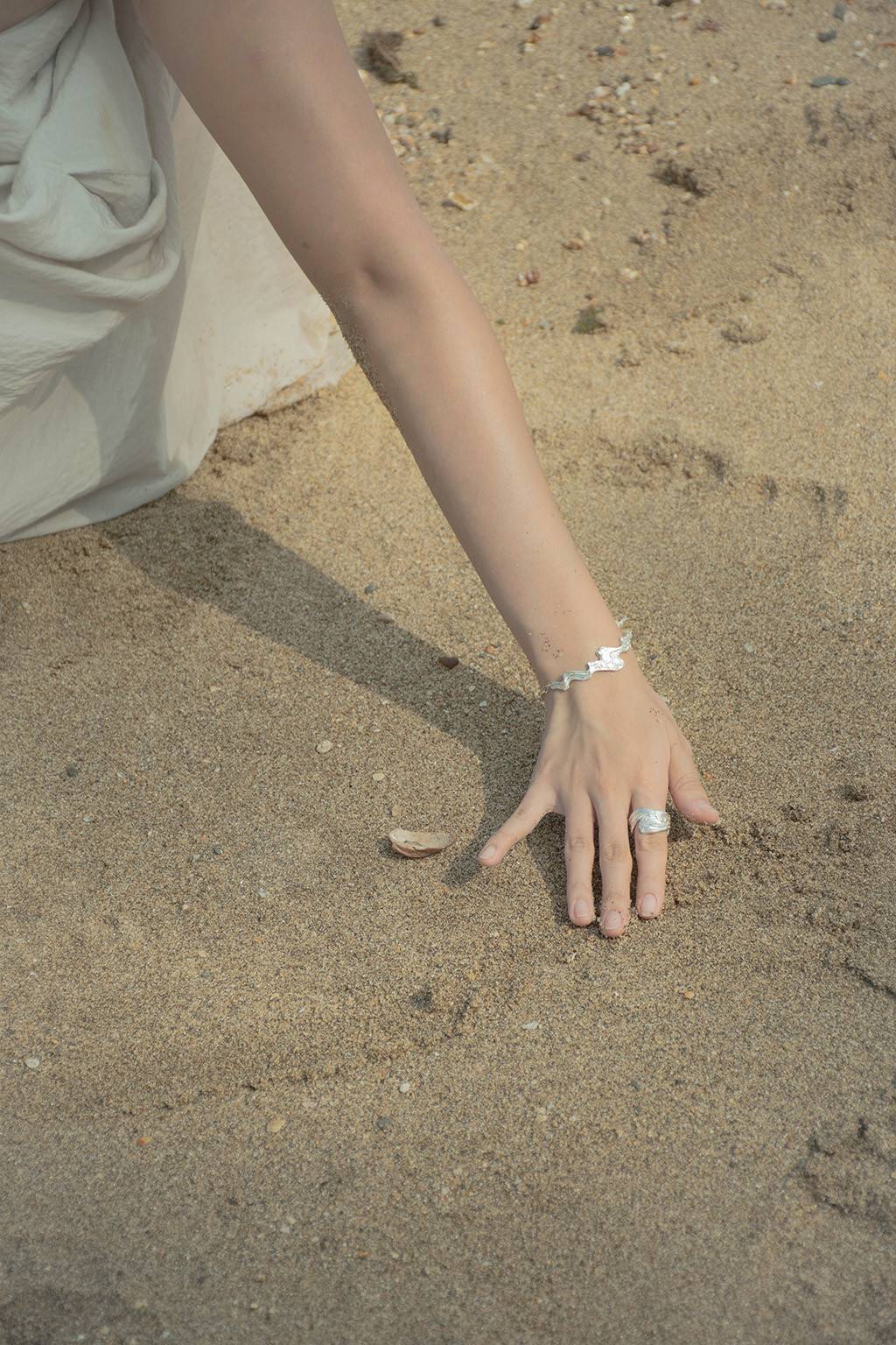 海浪終將回歸大海,浪影或許消逝,但痕跡依然存在。身體是浪潮拍打的岸,飾物則是留下的印記,佩戴於身,成為一種親密的共存,尊敬並珍惜每一個片刻。