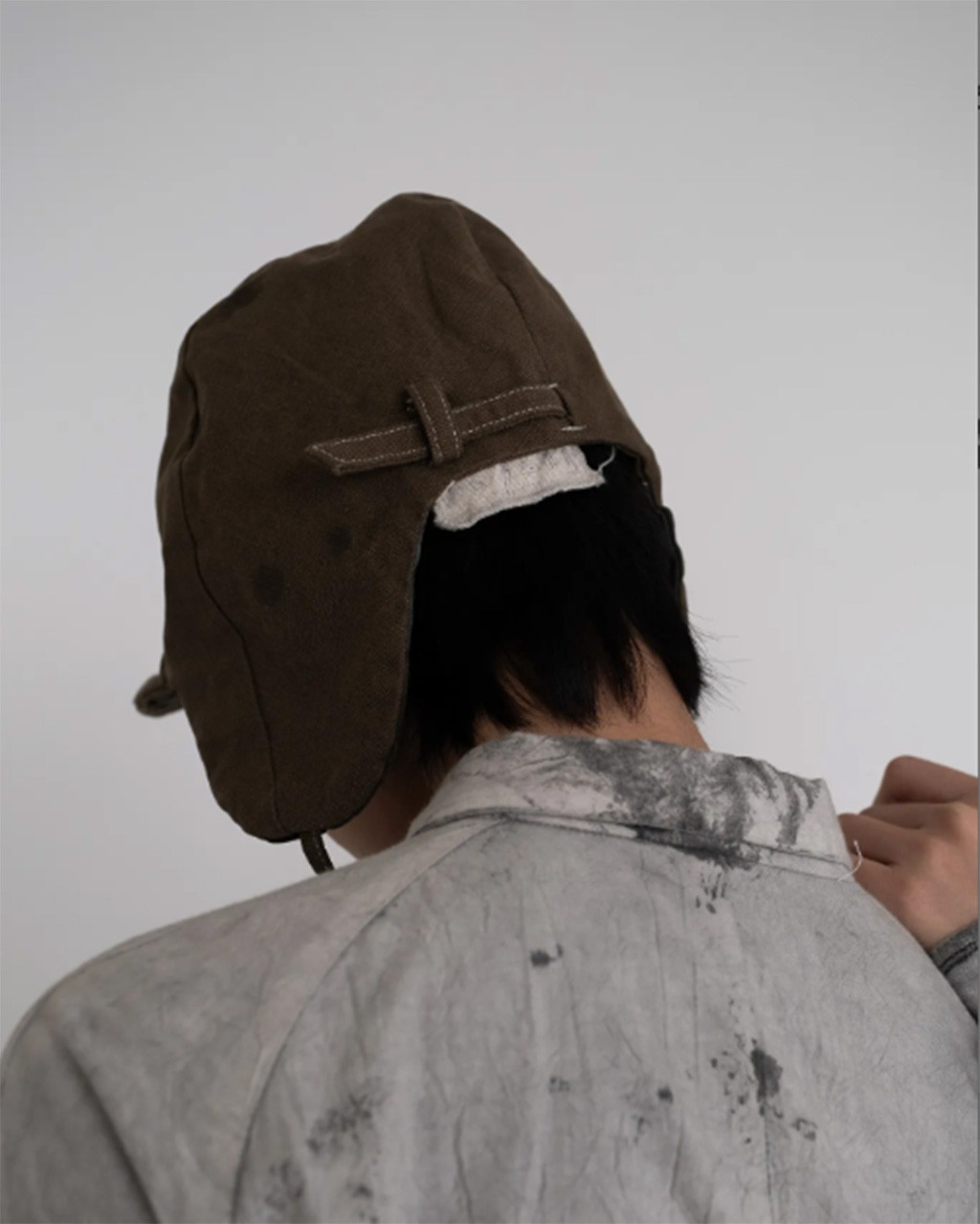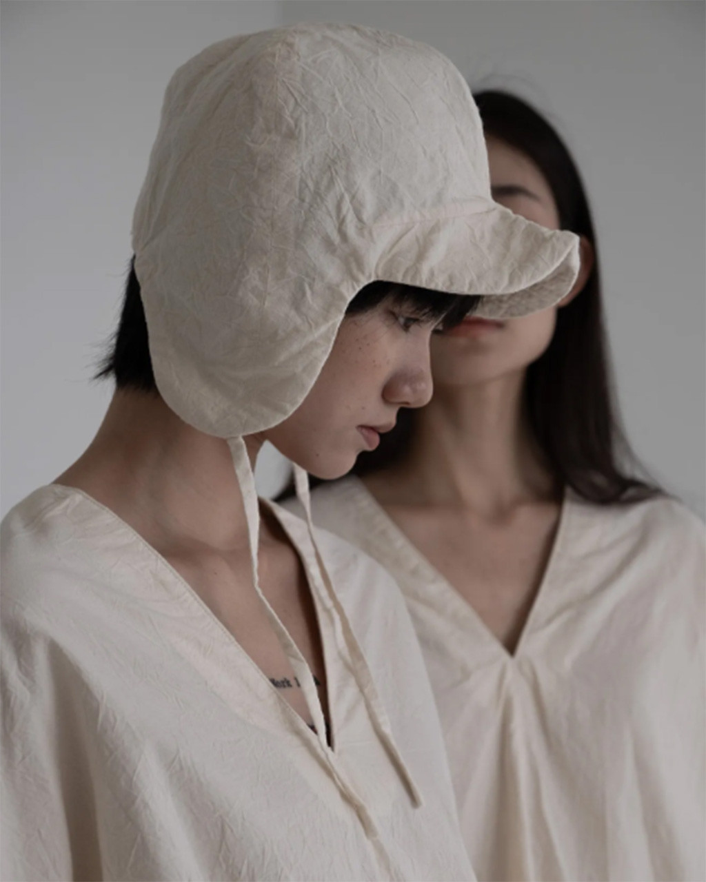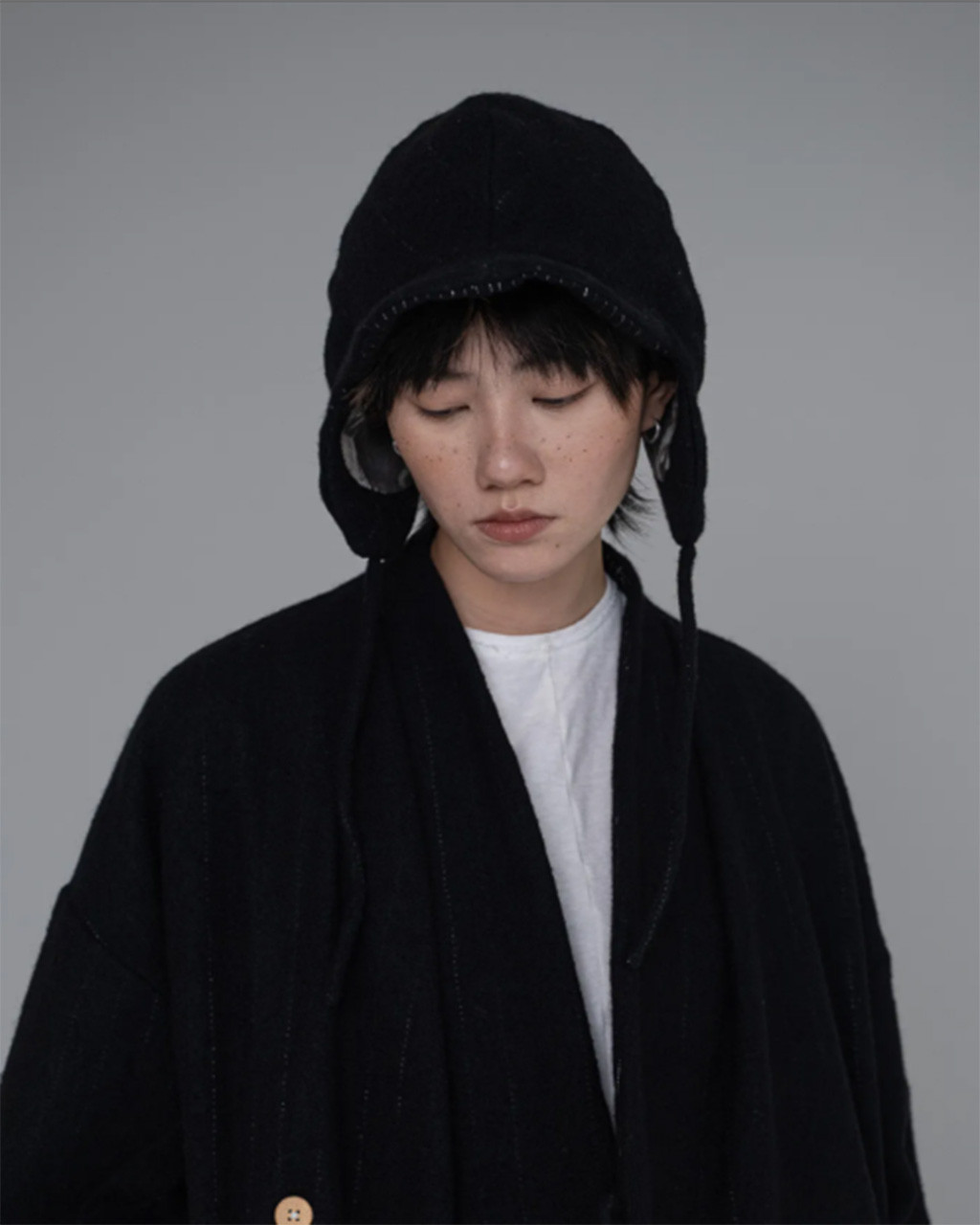 24 秋冬系列 "IN-BETWEEN" 探索各種形式和層次的轉變,並深入思考人體與服裝之間的互動關係。 在人體與服裝之間、在布料與布料之間,使用全天然素材,運用麻、棉、羊毛等天然材質以及各種工藝技術和染色方法,有意識地將自身置入於型態與層次之間的起伏與堆疊,並藉由服裝的形式,記錄轉變當下的模樣,呈現創作當下所代表的意義。
