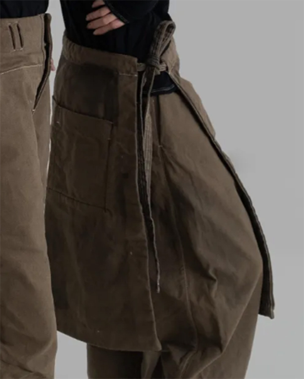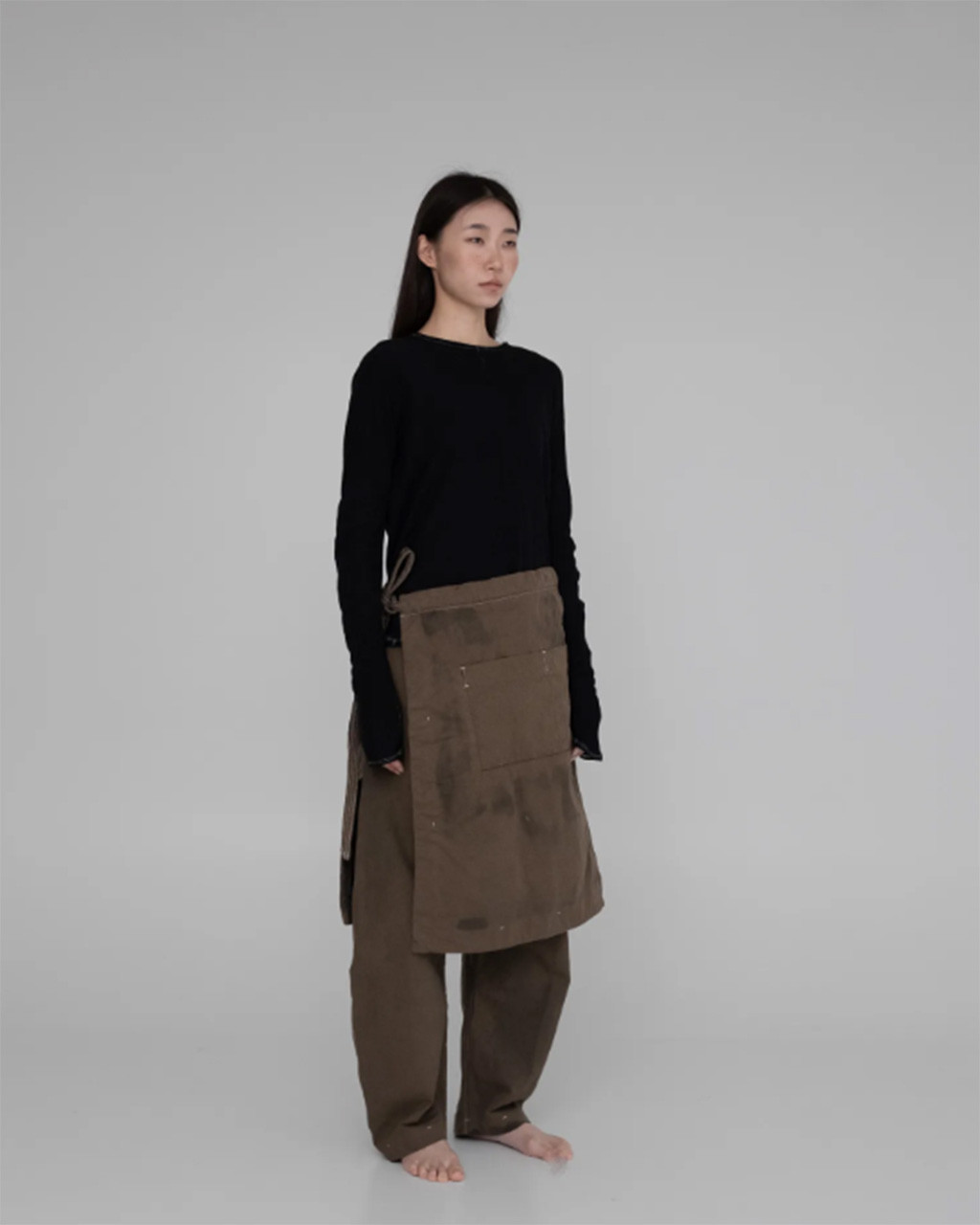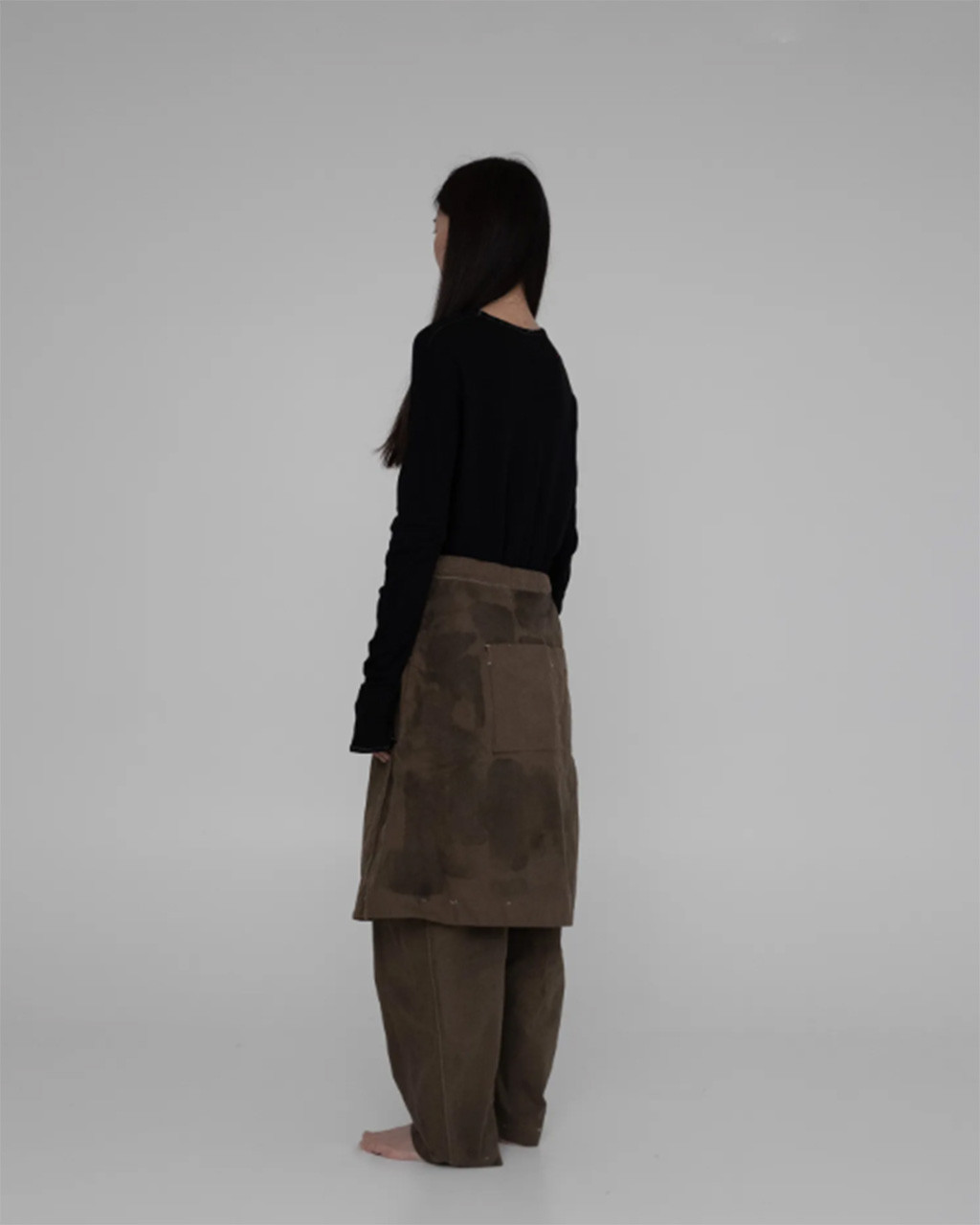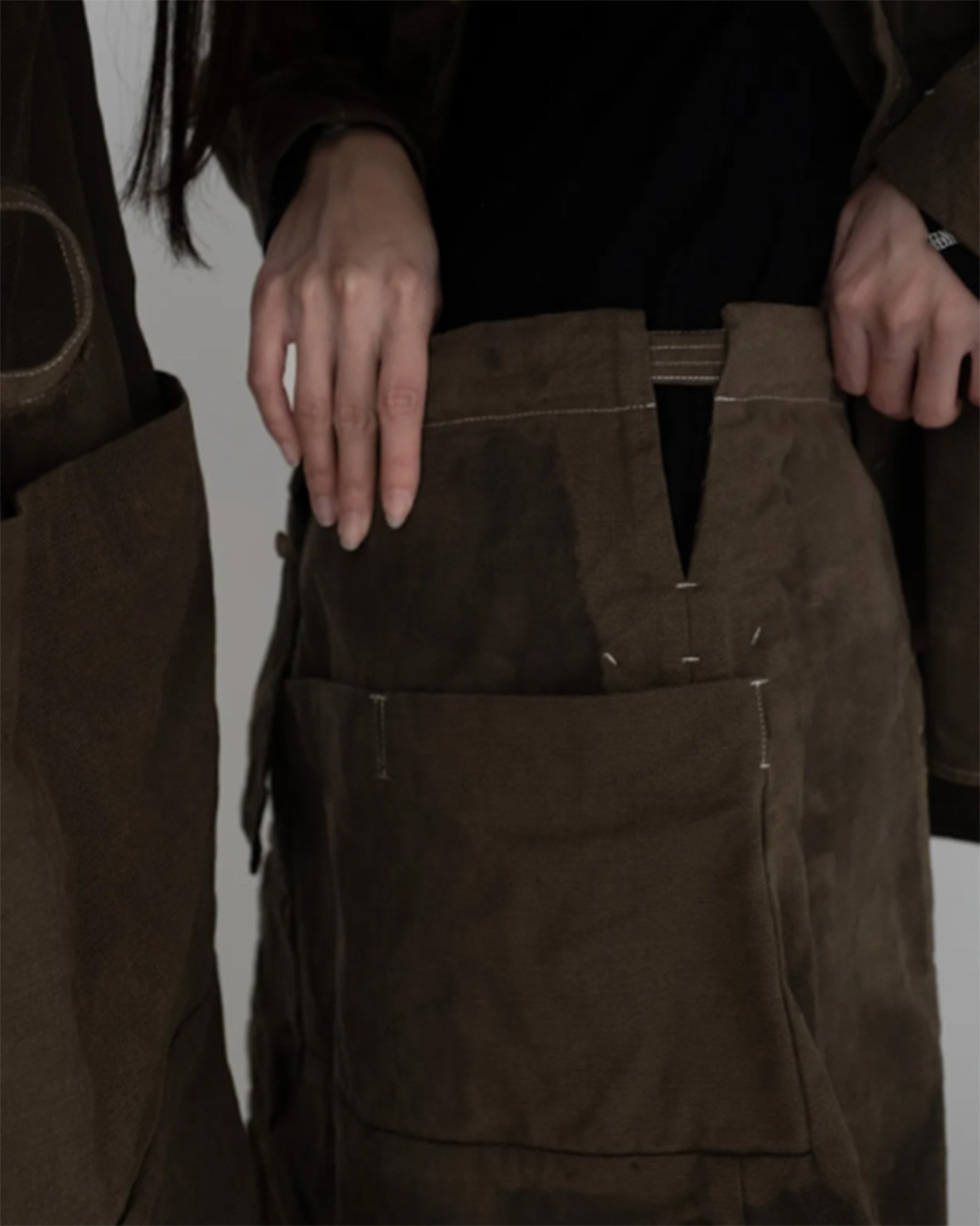 24 秋冬系列 "IN-BETWEEN" 探索各種形式和層次的轉變,並深入思考人體與服裝之間的互動關係。 在人體與服裝之間、在布料與布料之間,使用全天然素材,運用麻、棉、羊毛等天然材質以及各種工藝技術和染色方法,有意識地將自身置入於型態與層次之間的起伏與堆疊,並藉由服裝的形式,記錄轉變當下的模樣,呈現創作當下所代表的意義。