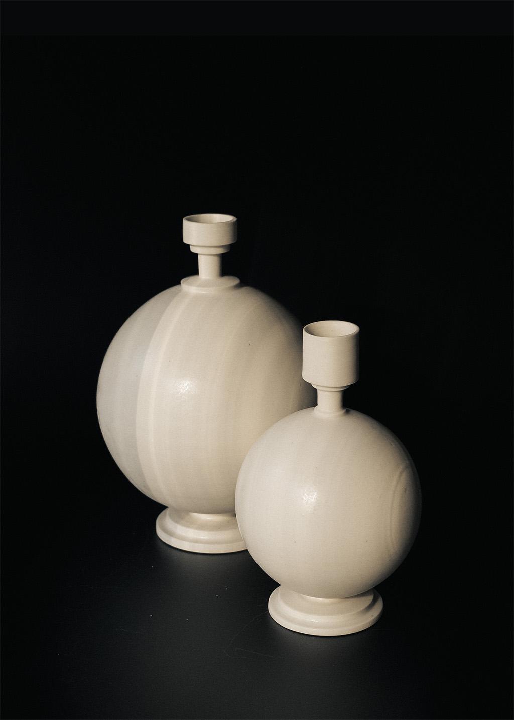 將堆疊感與機械感融入古典的結構中也許會讓人想到蒸氣龐克,但卻被白瓷收斂而變的雅緻。