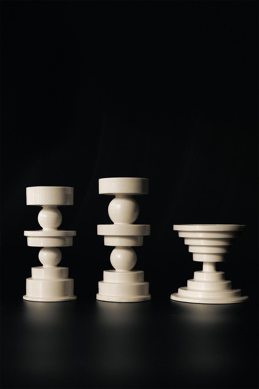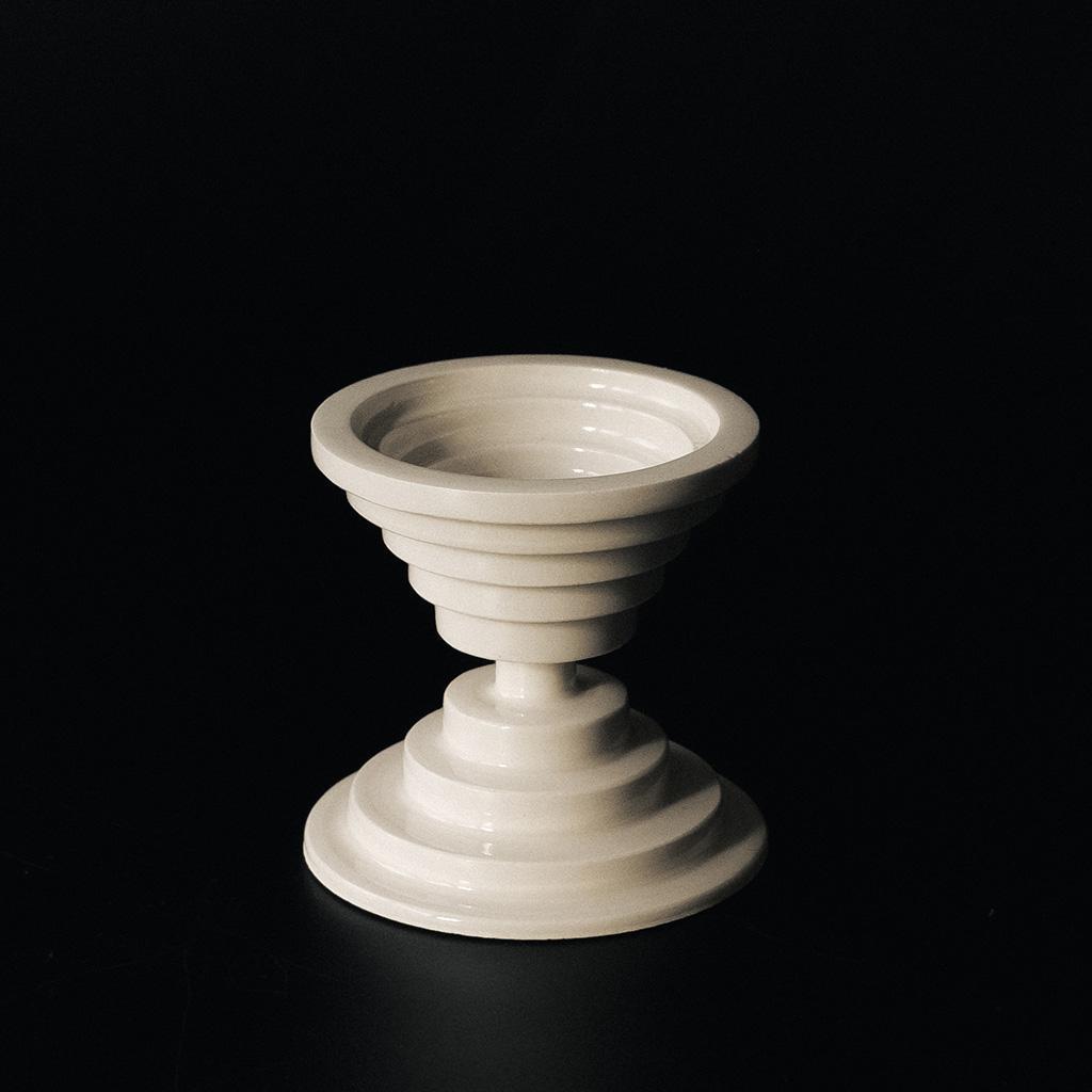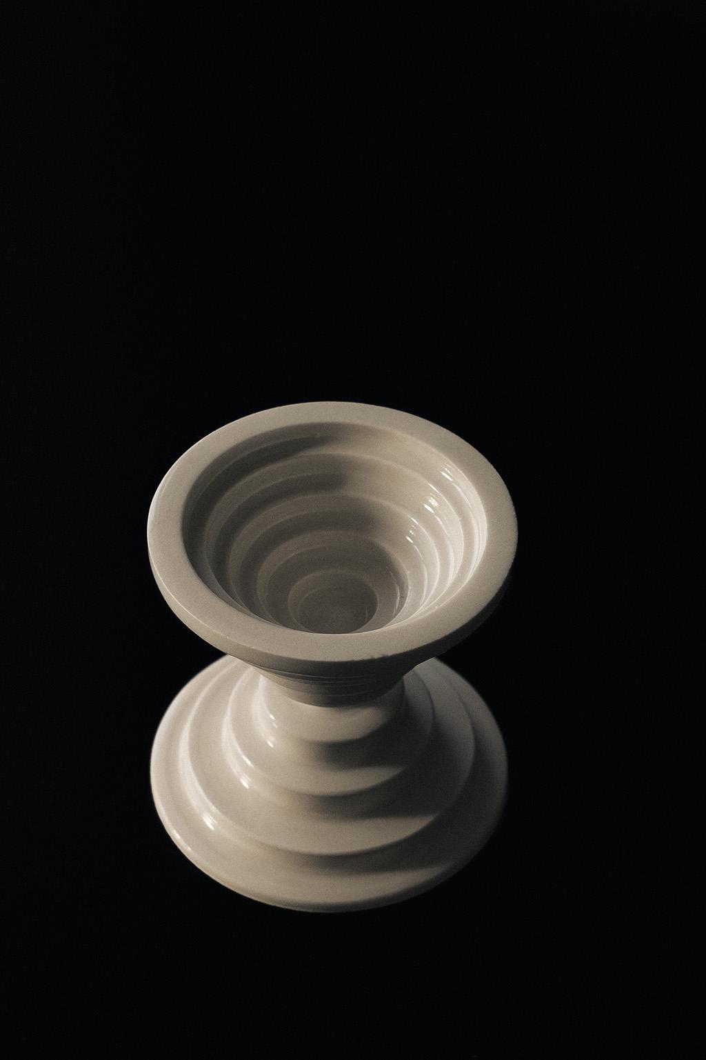 將堆疊感與機械感融入古典的結構中也許會讓人想到蒸氣龐克,但卻被白瓷收斂而變的雅緻。