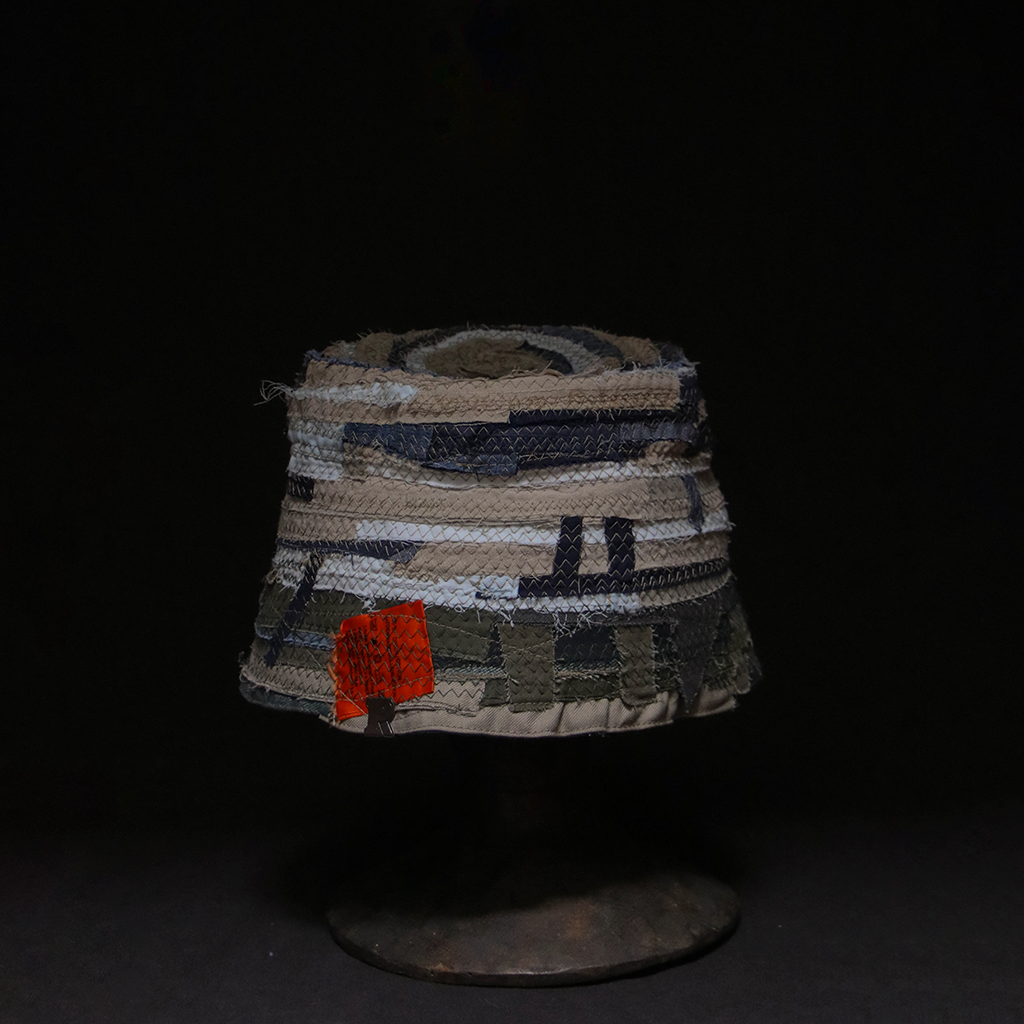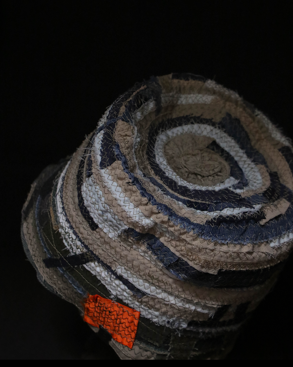 以回收舊衣拆解後的布邊為材料,結合手拉胚概念,創作出如布製陶器般的立體作品,重新賦予廢棄布料新生命。