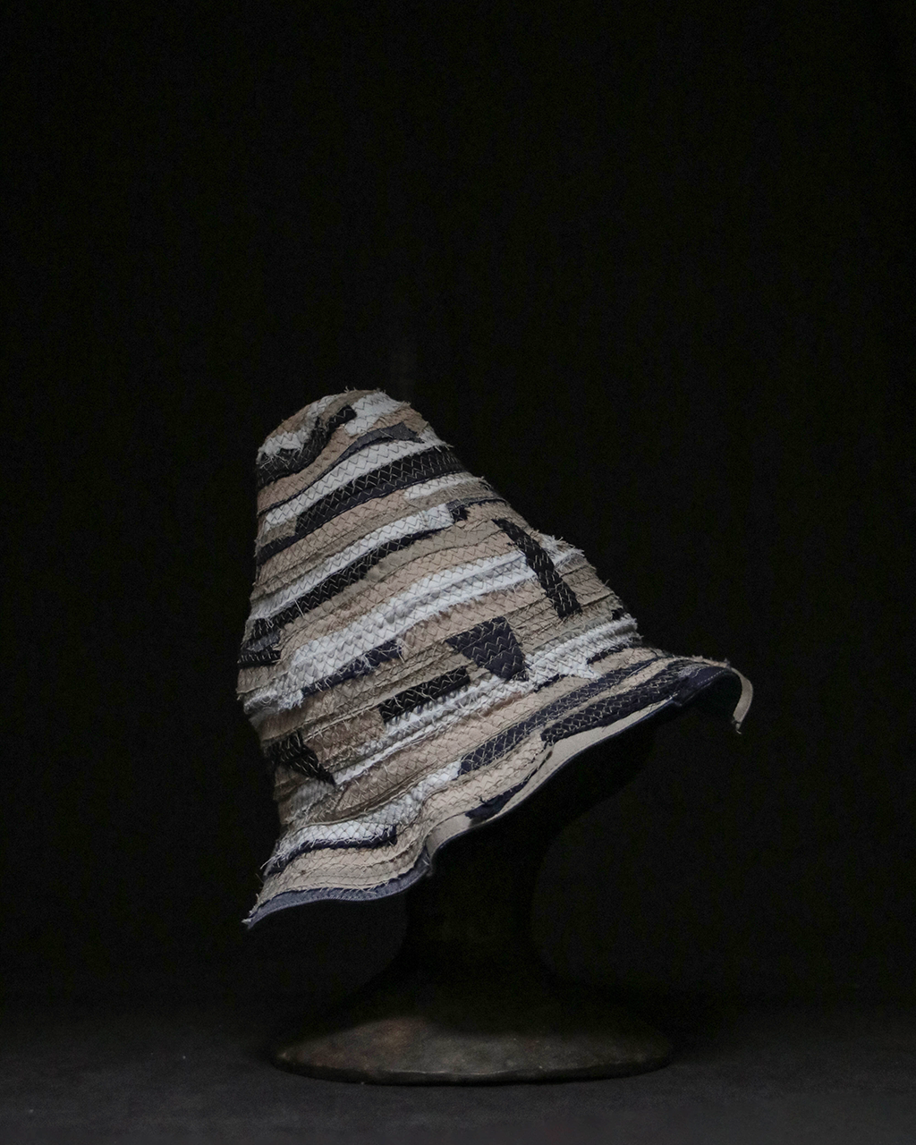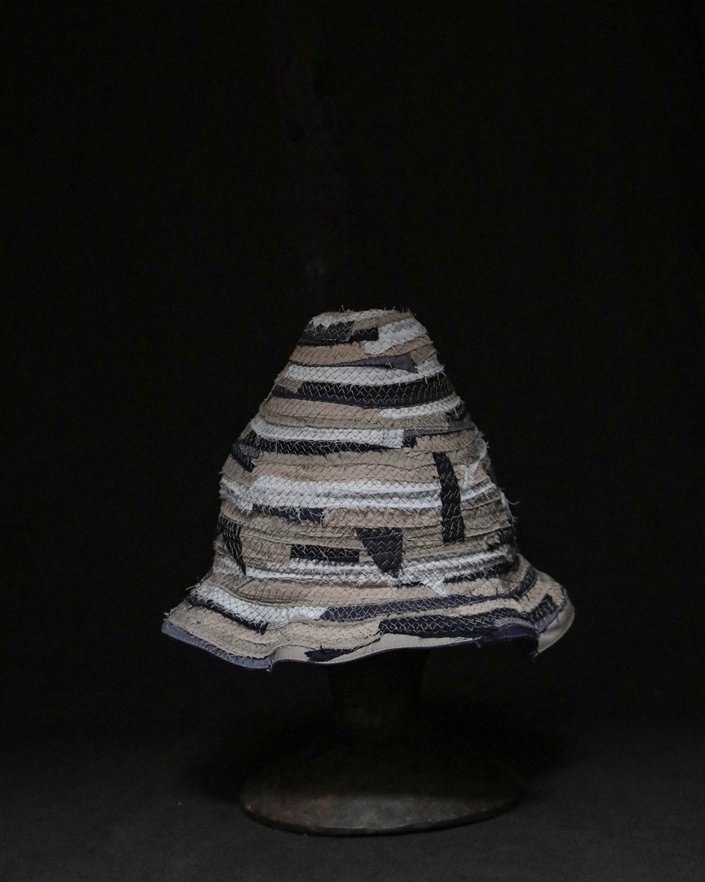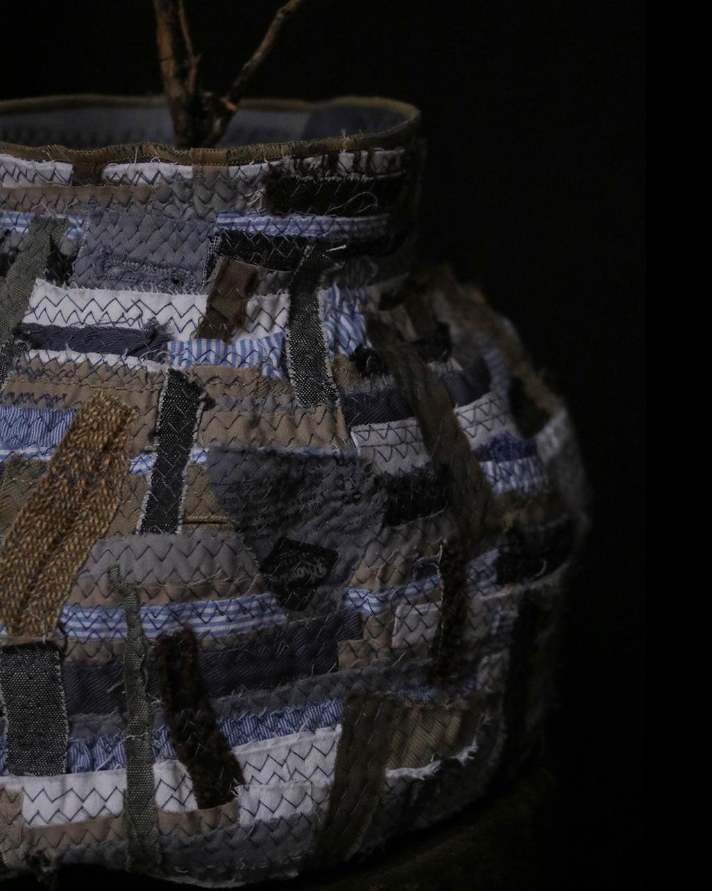 以回收舊衣拆解後的布邊為材料,結合手拉胚概念,創作出如布製陶器般的立體作品,重新賦予廢棄布料新生命。