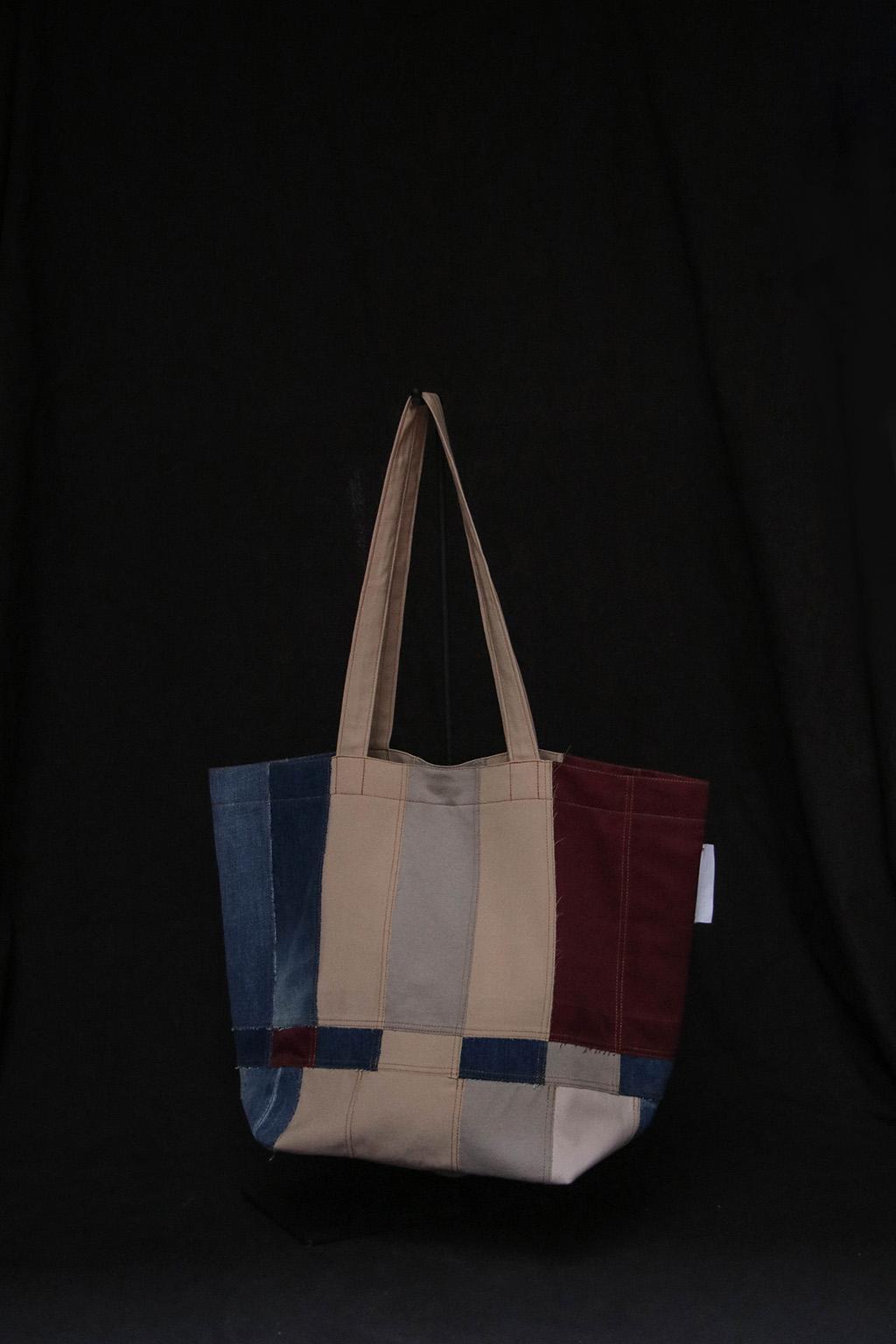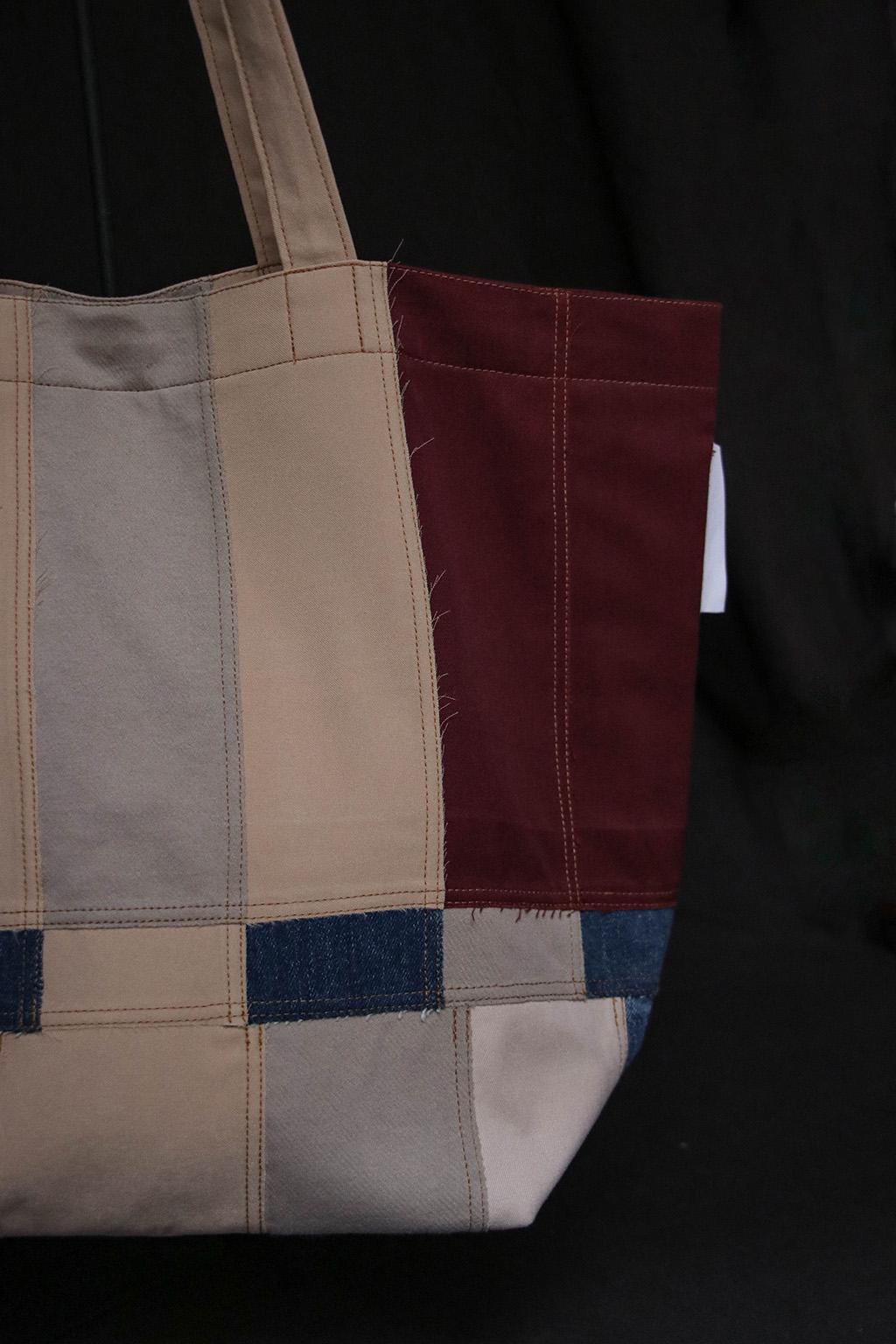 依設計版型裁剪布片。部分碎布則作為「布陶器」系列之塑形材料,重新轉化為立體結構。