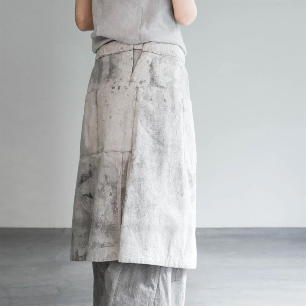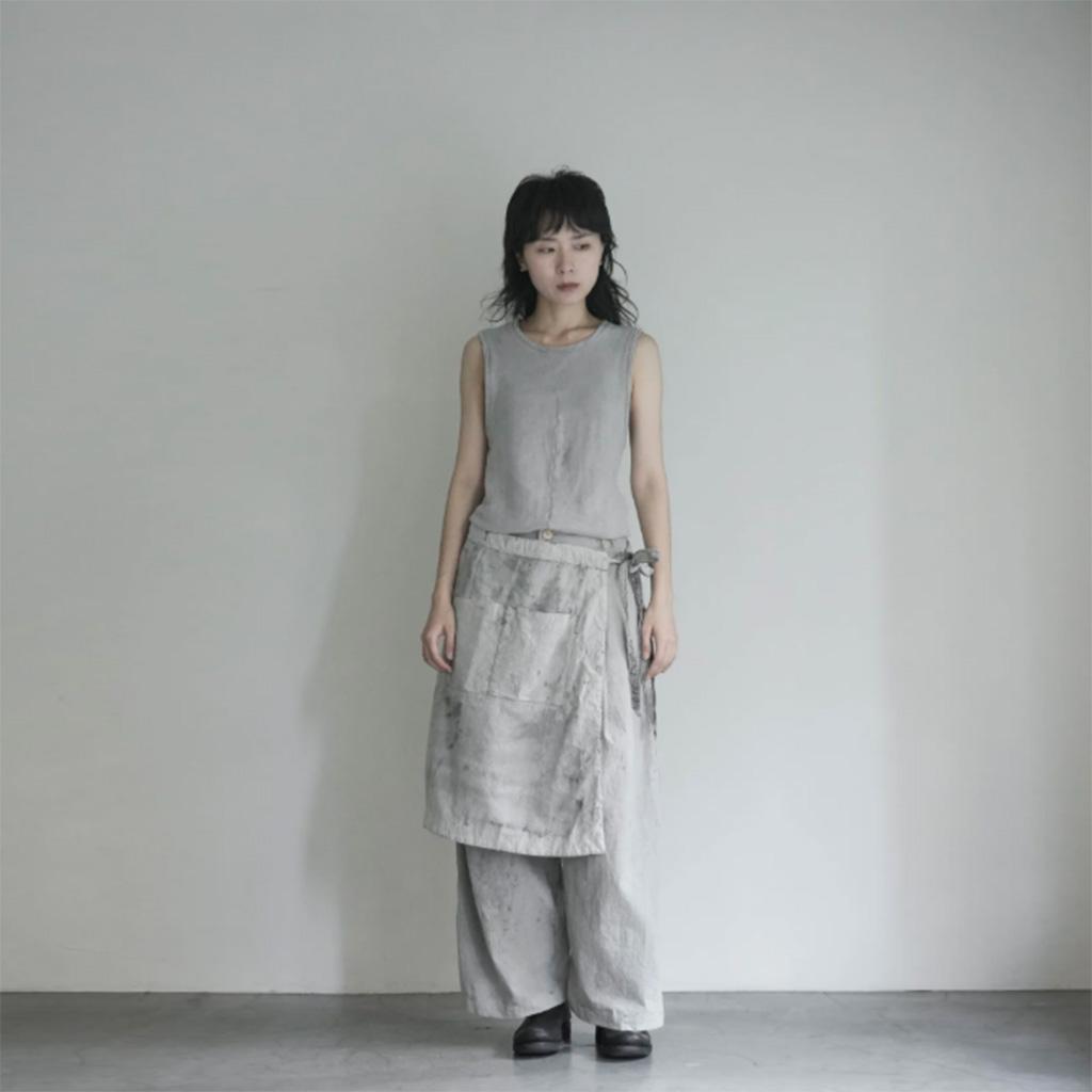 24 秋冬系列 "IN-BETWEEN" 探索各種形式和層次的轉變,並深入思考人體與服裝之間的互動關係。 在人體與服裝之間、在布料與布料之間,使用全天然素材,運用麻、棉、羊毛等天然材質以及各種工藝技術和染色方法,有意識地將自身置入於型態與層次之間的起伏與堆疊,並藉由服裝的形式,記錄轉變當下的模樣,呈現創作當下所代表的意義。